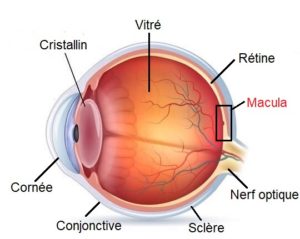 La macula est une petite zone située au centre de la rétine, au fond de l’œil.